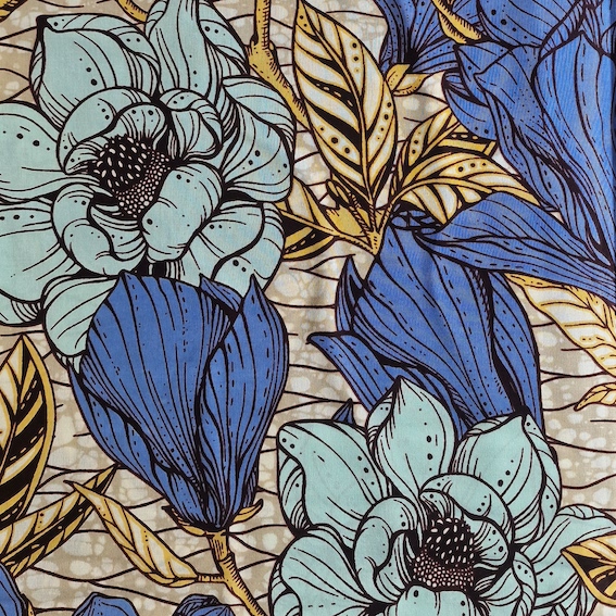 Afrikanischer Wax Print Stoff Baumwolle – Blue Flowers kaufen