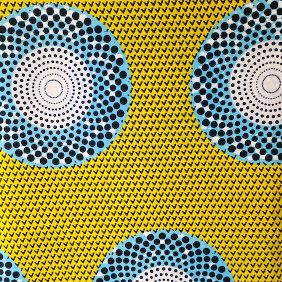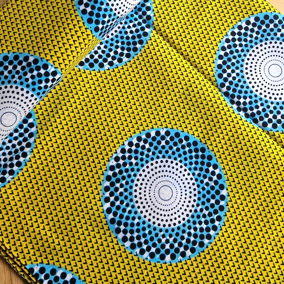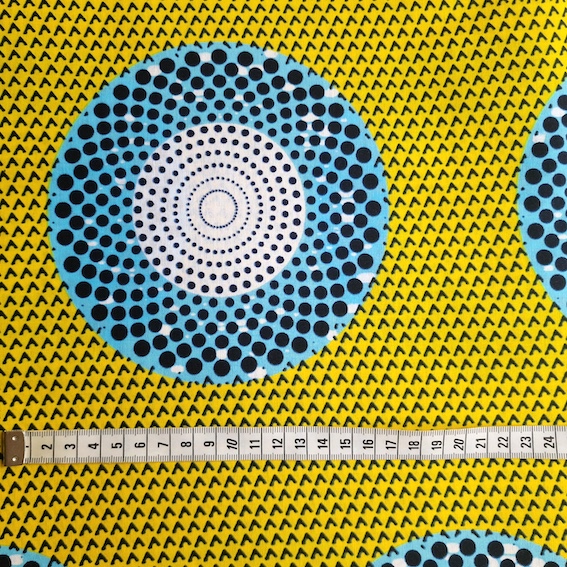 Afrikanischer Wax Print Stoff Baumwolle – Blue Yellow Circle kaufen