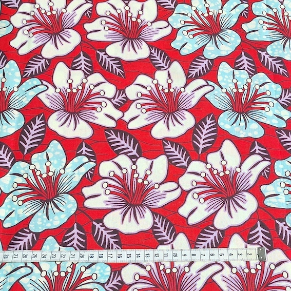 Afrikanischer Wax Print Stoff Baumwolle – Red Retro Flowers kaufen
