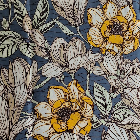 Sonniges Gelb trifft auf lebendiges Blumenmuster: Yellow Flowers bringt Frische und Gute-Laune-Vibes in jedes Nähprojekt. Der Ankara/Wax Print aus 100 % Baumwolle ist hautfreundlich, formstabil und überzeugt mit intensiven, farbechten Prints – perfekt für Mode, Accessoires und Home-Deko.