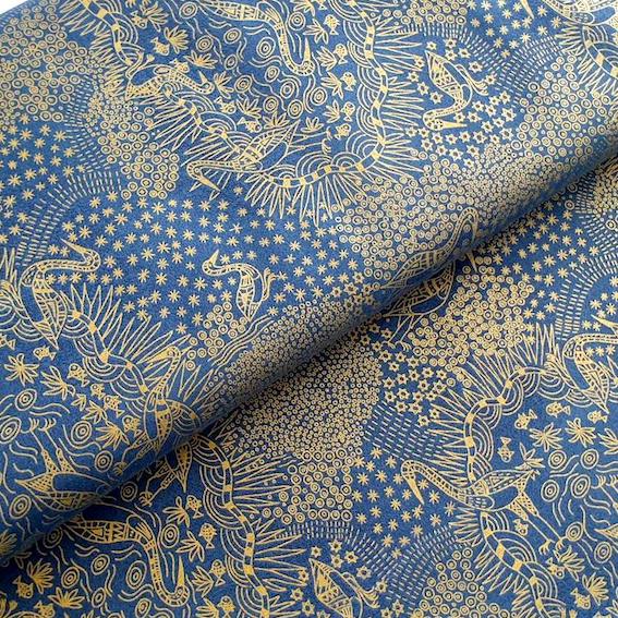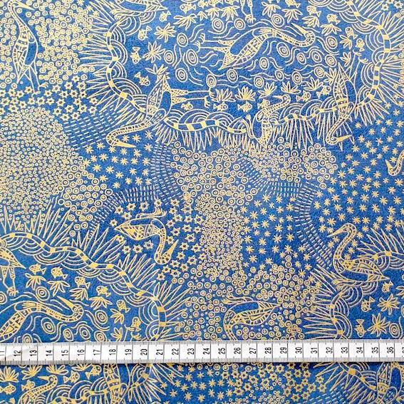 Entdecken Sie den Brolga Life Aborigines Stoff aus Australien – ein hochwertiger Baumwollstoff, der mit einzigartigem Design begeistert. Jedes Muster ist ein wahres Kunstwerk und erzählt eine faszinierende Geschichte aus der Traumzeit, entworfen von talentierten Aborigines KünstlerInnen. Der Stoff eignet sich perfekt für die Kreation von Blusen, Tunikas und Kleidern, ebenso wie für kreative Projekte in der Innendekoration und Patchwork. Lassen Sie sich von der Schönheit der Aborigines Kultur inspirieren und bringen Sie ein Stück Australien in Ihre Nähprojekte.