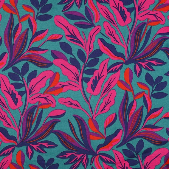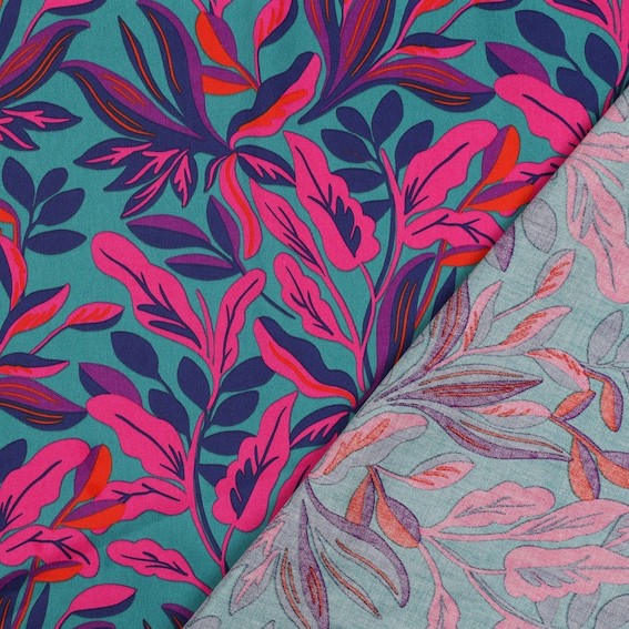 Der Baumwollsatin "Lush Leaves" in Petrol von Nerida Hansen verbindet Eleganz mit höchster Qualität. Das kunstvolle florale Design in Petrol, kombiniert mit harmonischen Farbnuancen in Grün, Blau, Beige und Braun, verleiht Ihren Nähprojekten eine außergewöhnliche Ästhetik. Durch seine zarte Haptik, den edlen Glanz und den wunderbar fließenden Fall eignet sich dieser Stoff ideal für exklusive Mode- und Wohnaccessoires.