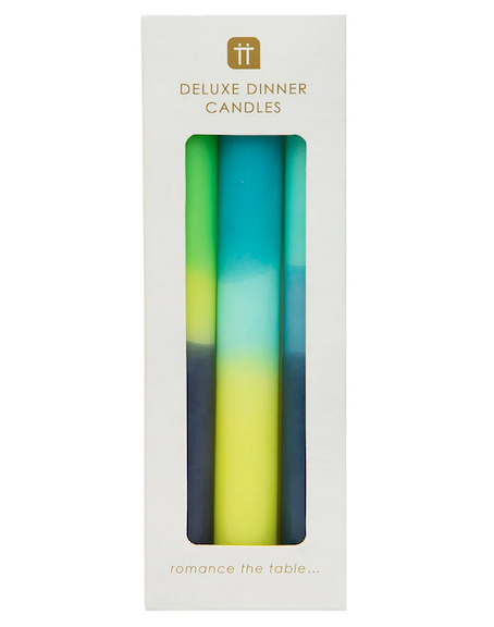 Marmoriert Blau Gelb Grün Dinnerkerzen - von Talking Tables - 3 Stück