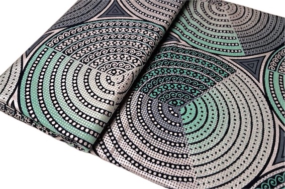 Erleben Sie die Qualität und den Charme des Afrikanischen Osikani Stoffs mit unserem GREEN SILVER CIRCLES Stoff und lassen Sie Ihrer Kreativität freien Lauf.
