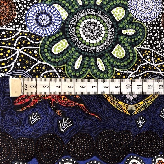 Der HOME COUNTRY Aborigines Stoff aus Australien begeistert mit hochwertiger, feiner Baumwolle und einem einzigartigen Design. Jedes Muster ist ein wahres Kunstwerk, inspiriert von den Geschichten der Traumzeit und entworfen von talentierten Aborigines KünstlerInnen. Dieser vielseitige Stoff eignet sich perfekt für die Herstellung von Blusen, Tunikas, Kleidern sowie für Innendekoration und Patchwork.