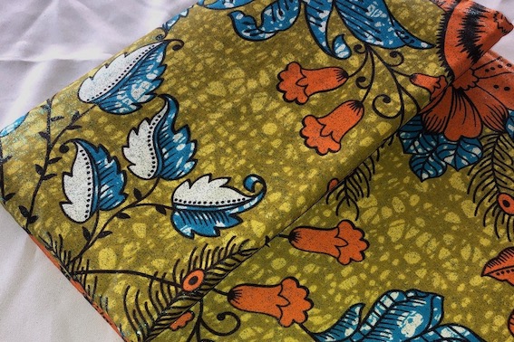 OLIVE FLOWER GARDEN METALLIC - Afrikanischer Osikani Wax Print Stoff
