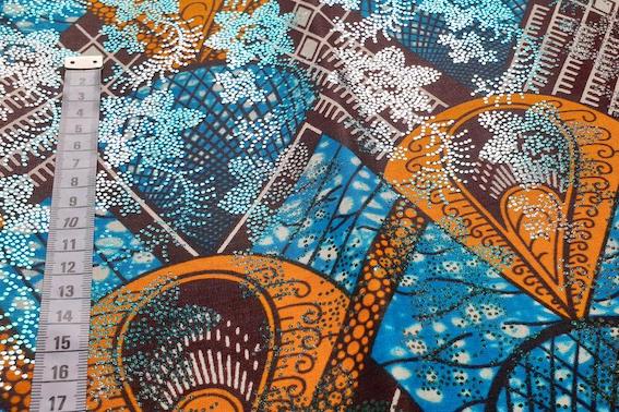 ORANGE BLUE FAN BLUE METALLIC - Afrikanischer Osikani Wax Print Stoff
