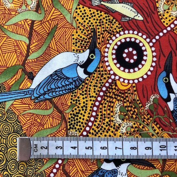 Orange Kingfisher Camp Aborigines Stoff aus Australien – Einzigartiges Design für Ihre Nähprojekte