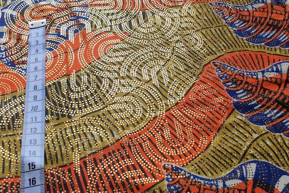 Der ORANGE SHELL Afrikanische Osikani Wax Print Stoff bringt mit seinem lebendigen Farbspiel und der typischen Metallicprägung einen einzigartigen Glanz in Ihre Designs. Dieser bunte Stoff ist ein wahres Highlight und eignet sich hervorragend für kreative Projekte.
