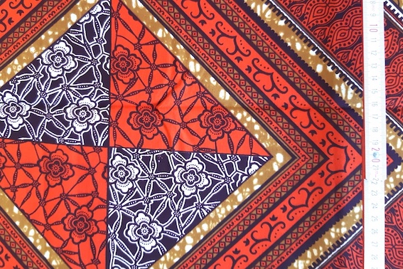 Tauchen Sie ein in die kraftvolle Welt afrikanischer Wax Print Stoffe mit unserem markanten RED SQUARES Design. Dieser Stoff kombiniert lebendiges Rot mit geometrischen Mustern zu einem kühnen Statement, das Ihre Nähprojekte zum Leben erweckt.