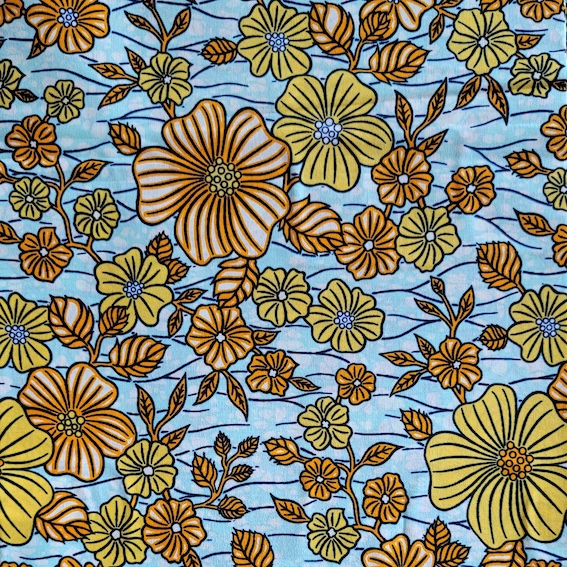 SUMMER FLOWERS - Afrikanischer Wax Print Stoff in Blau & Gelb
