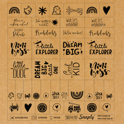 Verleihe Deinen Kinderprojekten einen einzigartigen, persönlichen Touch mit dem SnapPap Label Bogen - Kids! Diese SnapPap Labels sind die perfekte Ergänzung für selbstgenähte Kleidungsstücke, Taschen, Accessoires und vieles mehr. Mit den liebevoll gestalteten 40 kleinen Botschaften lässt sich jedes Nähwerk kinderleicht individuell aufwerten. Einfach die Labels ausschneiden, aufnähen und schon wird Dein Projekt zu einem ganz besonderen Einzelstück!