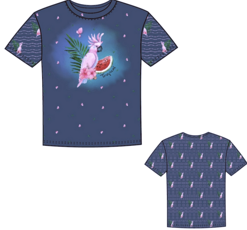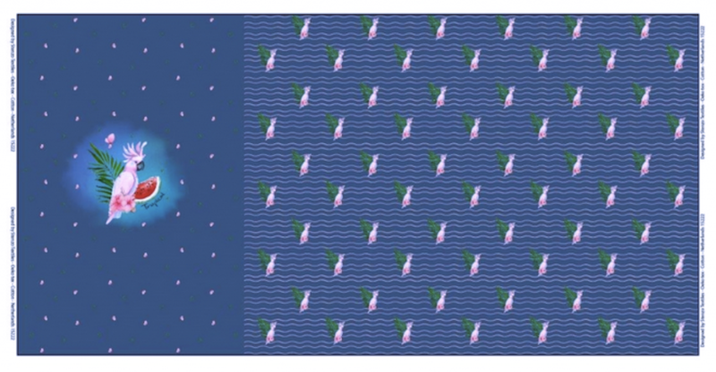 Der Jersey Kakadu ist kein Meterware-Produkt, sondern wird als komplettes Panel angeboten (Panelgröße: 72 cm). So erhalten Sie auf einen Blick verschiedene, harmonisch abgestimmte Designs, die sich ideal kombinieren lassen. Mit einer Stoffbreite von 150 cm bietet dieser Stoff ausreichend Material, um vielfältige und einzigartige Kleidungsstücke zu gestalten.