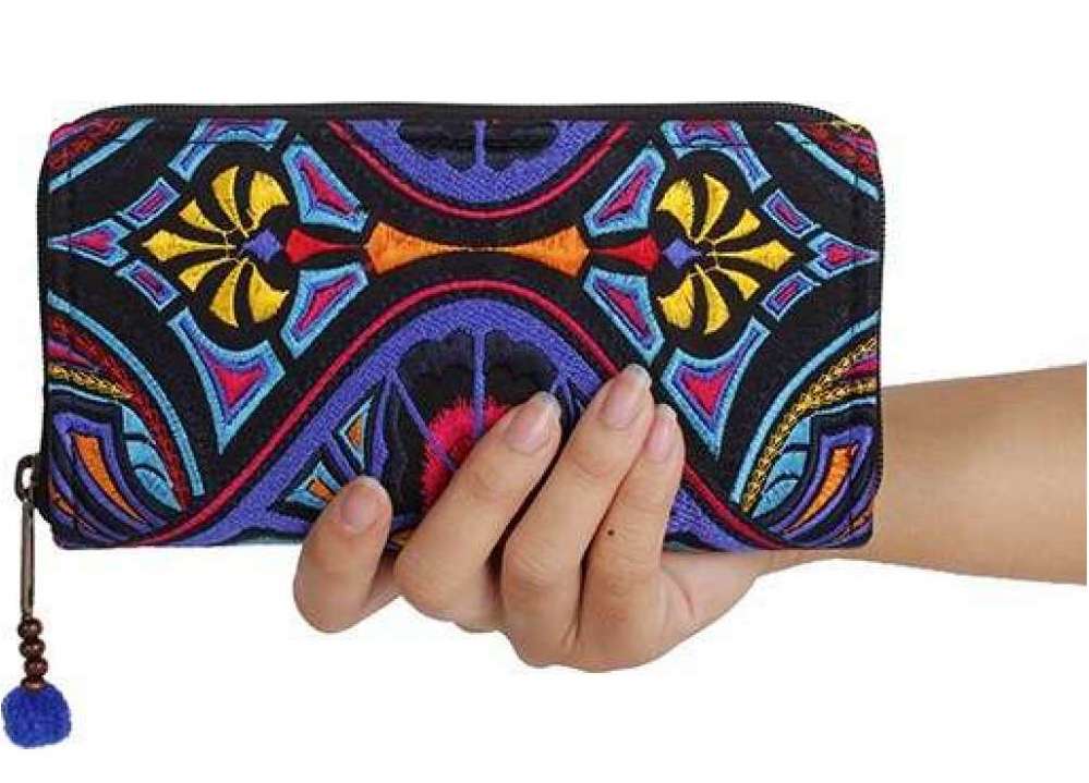 Dieses handgemachte Portemonnaie zieht mit seinem Tribal-Muster und den Pompoms alle Blicke auf sich. Durch den nachhaltigen fairen Handel dieses Produktes wird die ganze Gemeinschaft des Hmong Hill Stammes gestärkt und ihre reiche Kultur bewahrt.