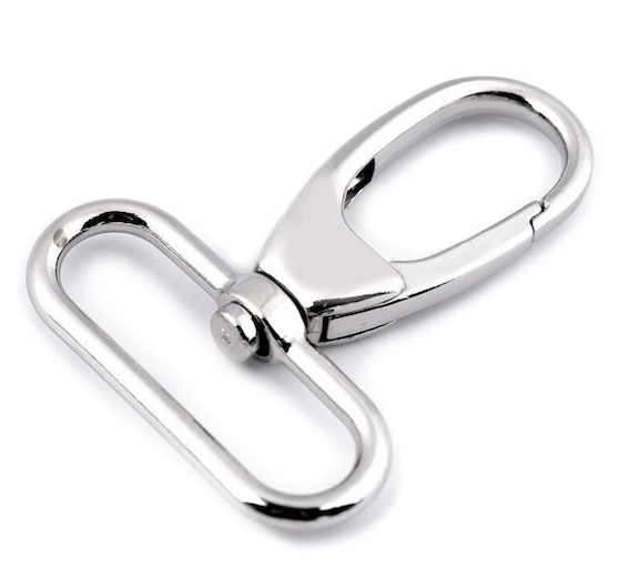 Dieser Karabiner in silberfarbenem Nickel-Finish ist ein echter Klassiker für kreative DIY-Projekte und Taschenhersteller. Dank seiner stabilen Ausführung und der drehbaren Befestigung eignet er sich ideal zur Anbringung von breiten Gurtbändern an Handtaschen, Reisetaschen oder Sporttaschen.
