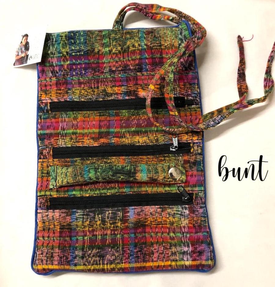 Der perfekte Begleiter für unterwegs. Die Schmuckrolle hat ein grosses Hauptfach für Halsketten und drei zusätzliche Reisverschlusstaschen welche sich für Ohrringe, Fusskettchen und kleinere Schmuckstücke eignen. Ebenfalls hat es einen Ringhalter. Sobald der Schmuck versorgt ist einfach aufrollen und zubinden. Diese Schmuckrolle wurde von unseren Partnern in Guatemala hergestellt.