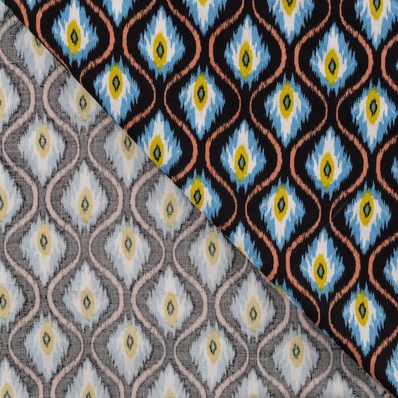 Der Viskosestoff mit Baumwolle "Yellow Peacock" bringt mit seinem lebendigen Design und dem angenehm weichen Griff sommerliche Leichtigkeit in jedes Nähprojekt. Die fein gewebte Struktur in Leinwandbindung sorgt für eine glatte Oberfläche, auf der der farbenfrohe Druck besonders brillant zur Geltung kommt.