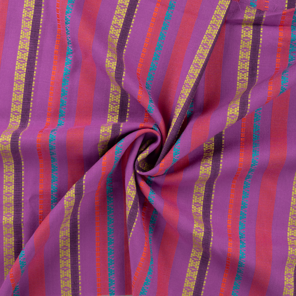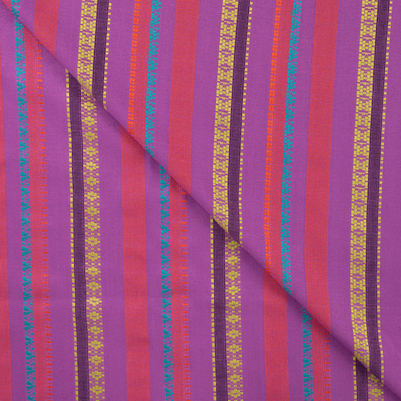 Viskose Lila mit Ethno Streifen - Weicher Stoff für ausdrucksstarke DIY-Mode