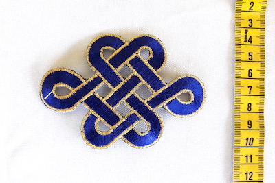 Die DARK BLUE ORNAMENT Applikation überzeugt mit ihrem traditionellen Design und den Maßen 6,5 cm x 9,5 cm. Perfekt, um Kleidung, Heimtextilien oder Accessoires zu veredeln. Ihre dunkle, elegante Farbgebung und hochwertige Verarbeitung machen sie vielseitig einsetzbar.