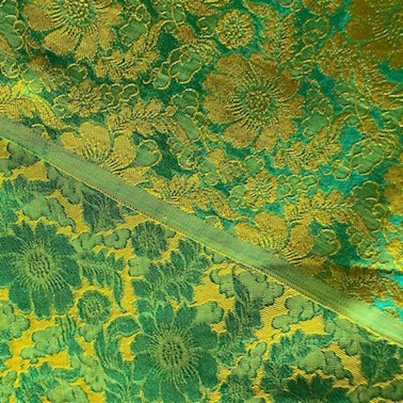 Der „GREEN YELLOW FLOWERS“ Seidenjacquard aus Vietnam ist ein exquisiter Stoff, der die Kunstfertigkeit vietnamesischer Handwerkskunst in jedem Detail widerspiegelt. Dieser leicht transparente Seidenstoff besticht durch ein raffiniertes, zweifarbiges Jacquardmuster in lebendigen Grün- und Gelbtönen. Dank der aufwendigen Jacquardwebtechnik erheben sich die floralen und orientalischen Motive dezent vom Stoff und verleihen ihm ein faszinierend exotisches Aussehen.